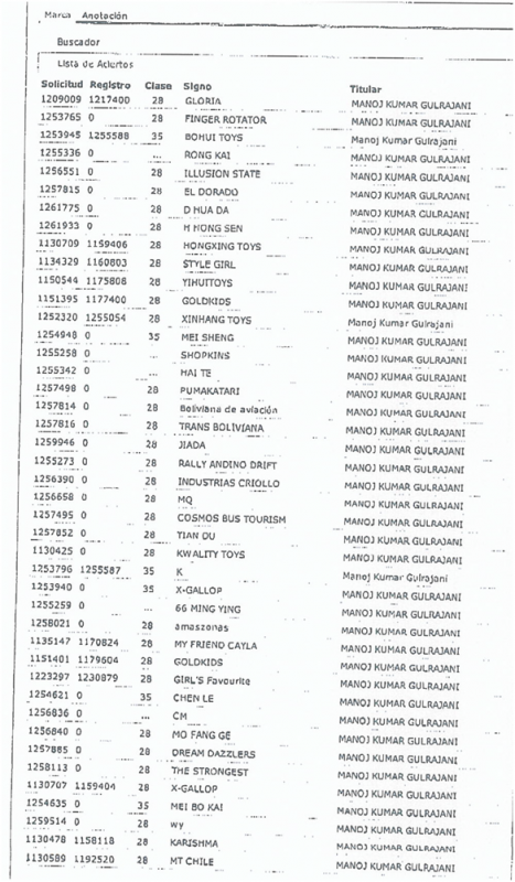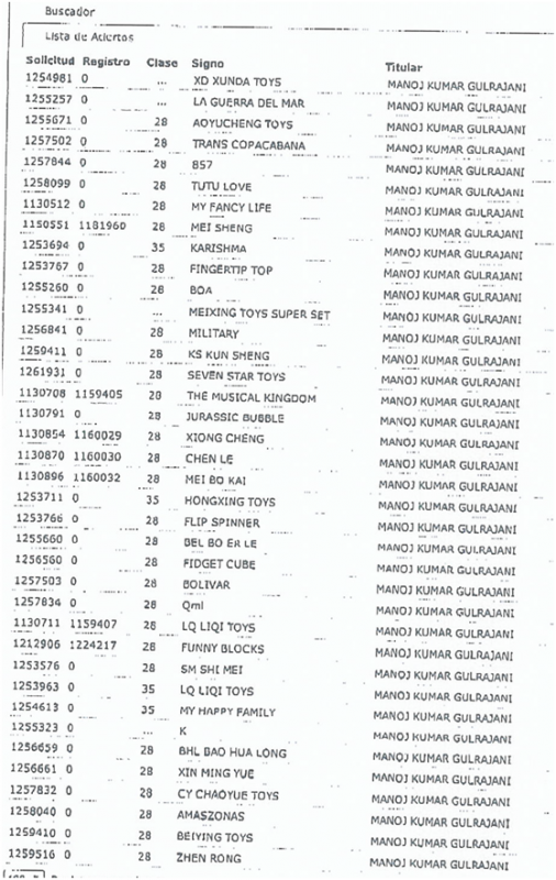 近日我局收到相關函件,稱有一名外籍商人將120多個中國玩具企業的廠名及商標以個人名義在智利工業產權局(INAPI)申請注冊,主要涉及第28類玩具相關產品(相關案件信息見附件)。據了解,目前其大部分商標注冊申請已經進入公告程序,如無異議將可能在近日內獲得批準。