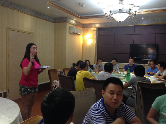參觀完東莞公司之后,大家到附近的餐廳享受美味午餐,席間,各位領(lǐng)導(dǎo)輪流發(fā)表了鼓舞人心的講話。餐畢,主持人阿瑩跟大家講了游戲規(guī)則,并宣布游戲開始,每一個(gè)人都收到神秘小紙條,通過破解紙條上的暗號(hào)找到自己的團(tuán)隊(duì)。