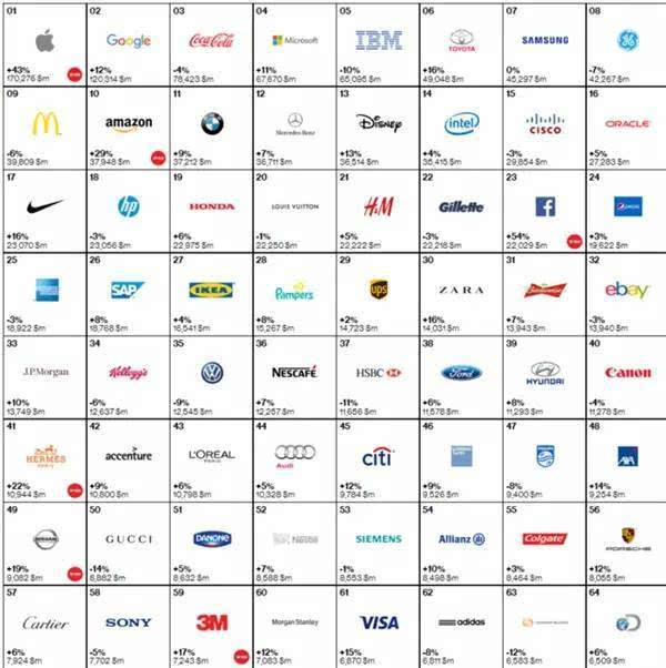 任天堂和諾基亞今年也被淘汰,其品牌價值未能躋身全球100強之列。
